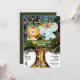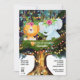 Uma ilustração aquosa adorável de um leão bebê e de um elefante azul bebê pendurando suas patas sobre um galho coberto de musgo numa árvore grande em que eles estão sentados, com falso brilho e luzes de cordas nela. Eles estão vestindo flores de hibisco e cercados por vinhas penduradas e um fundo verde-escuro da floresta. Os modelos pretos podem ser personalizados para atender às suas necessidades. Perfeito para safari; festas de chás de fraldas temáticos da selva e do zoológico.