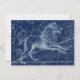 Leão zodiac assina ilustração gráfica de vintagem com estrelas e constelações sobre fundo azul escuro.