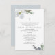O legante batismo ou batismo religioso, a aquarela botânica, batizando e primeiro convite de aniversário, enquadra seus detalhes com uma fronteira de cinzas modernas folhas aquáticas e flores em tons legal de cinza e verde em um claro fundo branco. Os detalhes de seu evento são definidos em uma fonte elegante de sans serif e script tradicional. Este convite neutro de gênero apresenta uma escritura que pode ser editada para incluir o verso da bíblia religiosa que se adequa às suas necessidades. Uma escolha encantadora para eventos temáticos de primavera, verão, outono, rústico ou jardim. Para ver mais designs de cruz religiosa e flores como esta, visite o VG Invites em www.zazzle.com/vginvites