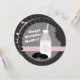 Um convite de aniversário que ilustra uma garrafa de leite com palha listrada rosa e branca e dois biscoitos de chocolate. O convite também apresenta fenda, revestimento sólido e design de explosão solar. Personalize o texto.