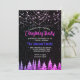 As árvores cor-de-rosa-Natal pretas falham as luzes de férias brilhantes monograma cartão de convite de Natal. Um cartão de Natal bonito e brilhante. Perfeito por enviar para a família ou amigos durante o feriado. Para torná-lo mais especial, ele é embelezado com belos brilhos falsos. Este design também pode ser transferido para qualquer produto do zazzle. Você pode personalizá-lo com seu próprio texto e informações. NOTA: Estes são gráficos impressos - sem brilho real, joias ou peças levantadas
