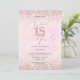 PixDezines Sweet 15 com diamantes cor-de-rosa estudados, brilhos de ouro rosa e fundo de aquarela acentuados com bolhas cor-de-rosa pinceladas com caligrafia de luxo agregaram elegância para a 16ª Festa de aniversário.