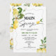 Lemon Ela Encontrou Seu Chá de panela Amarelo e verde-limão chá de panela principal com dois arranjos de limão e flor, palavra caligrafia moderna e estrutura de onda fina. Este moderno que ela encontrou é ideal para uma festa de limão chá de panela.