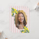 Celebrate your achievement with this fresh lemon graduation photo announcement featuring soft pink stripes, bright citrus illustrations, and a modern elegant layout. Perfect for sharing your milestone in a stylish way, this design follows trending fruity, pastel, and floral-inspired graduation announcements. Easily personalize with your photo and details for a cheerful and memorable keepsake. Original artwork by Caroline Bonne Muller.
