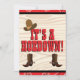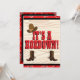 Convite de aniversário divertido com tema western com chapéu de 10 galões, ferraduras e botas, altere o texto você mesmo ao encomendar