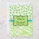 Personalize este sofisticado convite para o seu evento especial, festa ou reunião, almoço, janta, festa de aposentadoria, reunião, noite de saída para meninas ou outra celebração. A design apresenta riscas de zebra verde limão e branca e peles de leopardo ou de chita combinadas para uma design moderna e moderna. Um emblema de verde limão esboçado em preto num bar azul-azul-turquesa e cria uma área de personalização, com o nome da aniversariante e as palavras "Você é Convidado" que podem ser personalizadas para outras palavras. A parte traseira do convite inclui campos para todas as suas informações para a sua parte ou evento. Você pode facilmente alterar e excluir campos conforme necessário. As cores são verde limão, branco, azul de cor azul-turquesa e preto. Peles de animais selvagens para design gráfico é uma tendência de arte quente e design, e é extremamente popular de moda a decoração doméstica. Esta coleção sofisticada de impressões zebra e leopardo é uma das várias combinações de cores disponíveis para a escolha de convites e coordenadas com outros produtos para uma na moda.