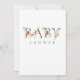 É um convite para chás de fraldas de meninas que apresenta letras alfabéticas e buquês decorados com flores de aquarela e folhas em verde-sábio, rosa-pincel, vermelho, branco, terracota e verde. Para uma personalização mais avançada deste design, clique no BOTÃO FERRAMENTA DESIGN AZUL acima. Itens correspondentes também estão disponíveis.