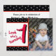 Carregue a foto do seu próprio filho e as informações da festa para este primeiro convite à celebração de aniversário, vermelho e preto. Comprar em massa e guarde!
