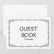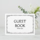 Sinal de casamento em estilo art déco simples e elegante, preto e branco, "Livro de visitas, por favor assine", personalizado com o seu próprio texto.