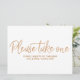 Um sinal de favores de casamento estiloso com letras à mão "Por favor, pegue um"