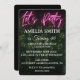 Pink neon inspired "Let's Party" script over boxwood greenery background with custom white text.