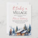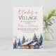 Celebre a chegada do seu pequeno com este confortável convite para o chá de fraldas de inverno. Apresentando uma encantadora cena de uma vila de neve com pinheiros e uma casa quente e acolhedora, esta design capta maravilhosamente o espírito de união com o slogan "É preciso uma vila". Perfeito para encontros de inverno, este convite combina charme sazonal com uma mensagem sincera, fazer ideal para os pais serem cercados por familiares e amigos. Personalize facilmente com seus detalhes de evento para obter um toque exclusivo e memorável.