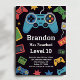 Convite Level Up Boys Gamer 10th Birthday Party