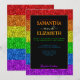 Personalize faux sparkly convidado com seus nomes e informações de casamento homossexuais. Celebre o seu amor com na moda único na mesma papelaria de casamento de gênero. Bandeja flexível LGBT em brilhos vibrantes vermelhos, laranja, amarelo, verde, azul e roxo vibrantes. *foto de faíscas não é uma falha real!