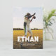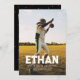 Com um nome ousado em uma foto vertical de solteiro, este anúncio de graduação é perfeito para um atleta graduado. Com uma fonte de estilo letterman esportivo, seu design pode ser personalizado com todos os detalhes do formando na frente. A parte traseira inclui espaço para duas fotos adicionais, assim como texto que pode ser usado para detalhes de convites para festas de formatura, planos futuros ou qualquer outra coisa que você queira. Com seu estilo esportivo, esse anúncio de graduação e convite é excelente para caras e meninas e trabalha com uma variedade de fotos.