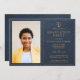 Marinho com a sua foto e texto personalizados, elegante e formal de modelo de luxo de couro azul e de cobre de direito de festa de formatura. +++++++++ Fácil de personalizar com suas informações!