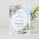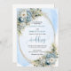 Set the tone for an unforgettable celebration with this elegant watercolor wedding invitation, beautifully designed with dusty blue florals, soft white peonies, and delicate eucalyptus