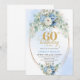 Convite Light blue floral white peony gold 60th birthday