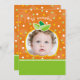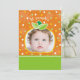 Uma saudação brilhante de outono ou Dia das Bruxas apresenta um quadro fotográfico em forma de abóbora rodeado de pontos brilhantes e folhas de queda numa paleta de laranja e verde.