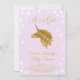 Este bonito convite para chás de fraldas lilás, decorado com um unicórnio de ouro ilustrado, é uma garota escrita em tons de ouro e flocos de neve, fazer perfeito para um chá de menina de inverno mágico.