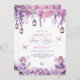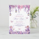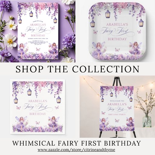 Celebre o primeiro aniversario mágico do seu pequeno com este encantador convite de aniversário "Fada Primeiro"! Lindas flores lilás e roxas, lanternas penduradas, borboletas e fadas brancas adoram este convite marco. Convide seus convidados para se juntarem à magia enquanto celebram este inesquecível primeiro aniversário!