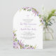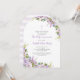 Costume de barato impresso nos convites da Primeira Comunhão. Este bonito design feminino tem uma borda floral de cor d'água com flores roxas pastel e verde. Personalize o design com os detalhes da Primeira Comunhão do seu filho. O verso tem um padrão de faixa de aquarela roxa ou use o espaço para adicionar texto e fotos adicionais. Clique em Personalizar para escolher qualquer cor de fundo e editar as fontes de texto e as cores para criar um único convite da comunidade.