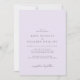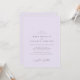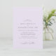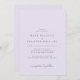 Convites de casamento púrpura suave com uma design baseada em texto. "Recepção a seguir" é escrita em escrita de caligrafia.