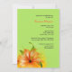 Um lírio atordoante agarra a frente e trás deste novo convite floral. O fundo verde de maçã contrasta lindamente com o vermelho, laranja e amarelo do lírio aberto. Adequado para qualquer caso feminino.O convite é fácil de personalizar com seu texto, fonte, cor da fonte e escolha de seis tipos de papel.