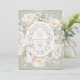 Lovely vintage romantic soft colors of lillies of the valley and peonies done in pinks and ivory shades. Perfect for any season wedding. All done on a sage green background with a faux gold rustic frame. A lovely bridal shower invitation for your special event.