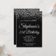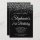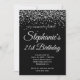 Crie a sua rua fabulosa 21 ou outro convite para comemoração de aniversário marco para ela. A parte superior do convite apresenta gráficos decorativos de borda de impressão leopardo cintilante prateada com brilho inverso contra um fundo preto sólido. Os brilhos, brilhos e brilhos do luxo serão criados por elementos artísticos que impressão gostam de uma foto.