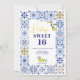 Convite Limão azulejos azuis italianos aquarelas Sweet 16