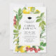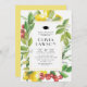 Vamos comemora o formando! Convide convidados para o seu evento com este convite de festa de formatura personalizável. Apresenta limões de aquarela, amoras-framboesas e sotaques verdes. Personalize-o adicionando nomes, datas, horários e outros detalhes do evento. Este convite para festas de formatura com tema limão também está disponível em outras estoques de cartolina.