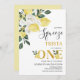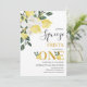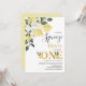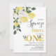 Lemon Our Main Squeeze First Birthday Invitation Sweet nossa principal espreme está fazendo um convite de aniversário com um grande arranjo floral branco e limões no canto superior da design. Esta garota é o nosso principal convite de primeiro aniversário de aperto também apresenta um dourado falso e um texto de caligrafia moderna editável.