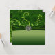Elegantes e sofisticados redemoinhos em verde lima e videiras florais em relevo sobre um fundo de veludo verde escuro. Uma faixa como veludo com centro de botão onde você pode adicionar a inicial do seu monograma para o seu casamento ou aniversário.