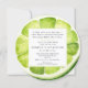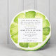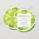 A little cutie is on the way! Celebrate your upcoming arrival with this vibrant and refreshing lime slice baby shower invitation. The design features a beautiful watercolor illustration of a juicy lime, perfect for a citrus-themed baby shower. This invitation sets a cheerful and zesty tone for your special event, inviting guests to 'squeeze' in some fun before the baby arrives. The clean white text area provides ample space for all your important baby shower details, ensuring your guests have everything they need to celebrate with you.