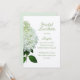 Bonito verde claro, o convite para chás florais é perfeito para uma noiva de primavera ou verão. Uma flor grande, branca e realista, borda o lado esquerdo com texto personalizado, em tons de verde, à direita. A variedade hydrangea é chamada de "luz de calcário" com pétalas brancas que se tornam verdes-claros no topo.