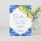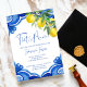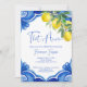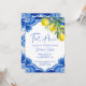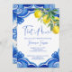 Blue Maiolica azulejos limões chá de panela italiano editável modelo instantâneo, convites de chá de panela de chá de panela mediterrâneos