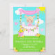 Este convite bonito e caprichoso mostra uma cabeleira loira com pele justa em um stand de limonadas cor-de-rosa que é decorado com flores e bunting. Ao fundo está um céu azul, sol e borboletas. O texto combina fontes decorativas e sans serif para um aspecto na moda e moderno. Isto é perfeito para uma festa de aniversário de verão. Gráficos de MUJKA