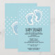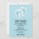 Convite de chuvinha de bebê com uma imagem encantadora de pegadas de bebê menino azul com um contorno branco grosso.