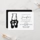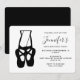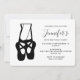 Um convite de aniversário com uma ilustração em preto e branco das pernas inferiores de uma bailarina e sapatilhas de balé, em pé nas pontas dos pés, en pointe. Também seria um bom convite para um recital de balé.