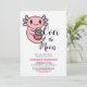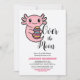 Convite Lindo Axolote sobre a Lua Segurando Ovo de Páscoa