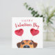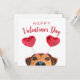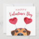 Ilustração de animal de estimação feliz no Dia dos Namorados com um cachorro curioso usando uma faixa de cabelo com coração vermelho. Saudação de feriado sazonal escrita em letras de tipografia moderna.