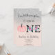 Nossa pequena abóbora está fazendo um ano! Celebrando o 1º aniversário . Um desenho moderno e fofo, desenhado à mão e pintado à mão em aquarela rosa pastel e brilho prateado chique com letras florais pretas e uma tipografia de fonte legal em um fundo totalmente personalizável.