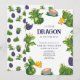 O "Convite de Chuveiro de Gênero Neutro com Dragão Fofo a Caminho" é uma maneira encantadora e imaginativa de convidar os convidados para celebrar um próximo chá de bebê. Este convite é lindamente adornado com uma borda que apresenta uma variedade de dragões bebês verdes e ovos de dragão roxos, criando uma atmosfera mágica e encantadora. As ilustrações lúdicas e vibrantes estabelecem um tom caprichoso para o evento, convidando os convidados a entrar em um mundo de fantasia e alegria.