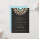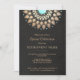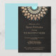 Chique e elegante com um toque contemporâneo. Imagem digital realista de fundo de linho preto rico dá um visual sofisticado e elegante. Linda decoração de roseta inspirada em mandala de falso foil dourado com centro turquesa vibrante. Fácil personalização do verso para a cor desejada. Nota: textura de linho e folha de ouro são imagens digitais - não são reais. Ideal para casamentos noturnos, eventos corporativos e de gala, festas de aniversário, festas de aposentadoria e muito mais.