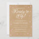 Com destaque para o título em letra cursiva branca 'Pronto para Estourar', lindos corações de amor cor-de-rosa estão espalhados em torno dos seus detalhes personalizados em texto branco sobre um fundo rústico kraft boho, neste convite chic de chá de bebê, sprinkle ou chá de casal. Concebido por Thisisnotme©