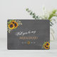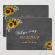 Desenho rústico e romântico de cartão com buquês de girassóis em aquarela, flechas com corações e girassóis como divisor, tudo sobre um fundo de foto de uma lousa de giz real. Use a ferramenta Personalizar para adicionar suas informações, alterar a DAMA DE HONRA COM BUQUÊ/ MATRIZ DE HONRA... para atender às suas necessidades, alterar a cor da fonte. Itens correspondentes podem ser encontrados na minha Coleção de Quadro de Giz de Girassóis Rústicos. Entre em contato se precisar de ajuda.
