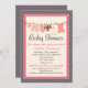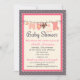 Convite colorido do chá de fraldas para a chegada da menina! A luz - cinza, cor-de-rosa e claro brilhantes - rosa é as cores principais. Linha bonito ilustração da roupa do bebê com roupa do bebé e um urso de ursinho bonito. Alguns elementos pelo design de Babystar.