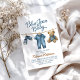 Celebrar a chegada de um cowboy com este Convite à Chá de fraldas Azul Jean! Este charmoso design apresenta uma cor d'água com roupas de bebê de denim perfeitas para um chá de fraldas rústico ou de temas ocidentais. A estética do jean azul clássico acrescenta uma tendência e um toque moderno, fazer ideal para celebrar um menino. Personalize os detalhes sem esforço para criar o convite perfeito para seu evento especial. ✨ Recursos: ✔️ roupas de bebê com denim de Watercolor em design de linha de roupa ✔️ tema de chá de fraldas Rustic blue boy Perfect ✔️ totalmente personalizável para chás de fraldas de denim e diamantes, chás de fraldas de cowboy ocidentais ou celebrações de bebês rústicos! elemento gerado AI design contido