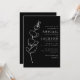 Este convite de casamento simples e elegante apresenta um traçado branco gracioso de um giz de eucalipto. Personalize o texto branco com os primeiros nomes da noiva e do noivo na fonte serif e o texto restante no script sans serif e manuscrito em um plano de fundo preto. A parte traseira da placa é preta e sólida.